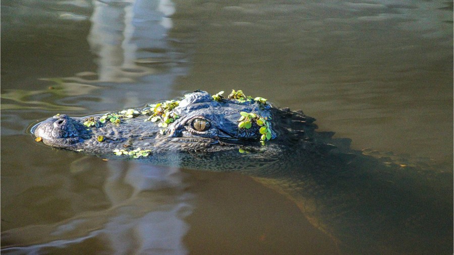 I mistake for an alligator by the pond