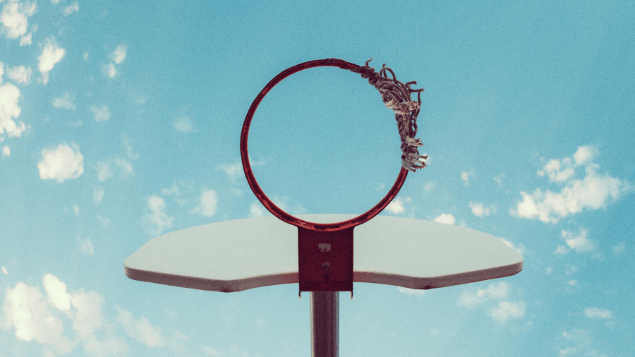 through the hoop of the yellow house across the street,