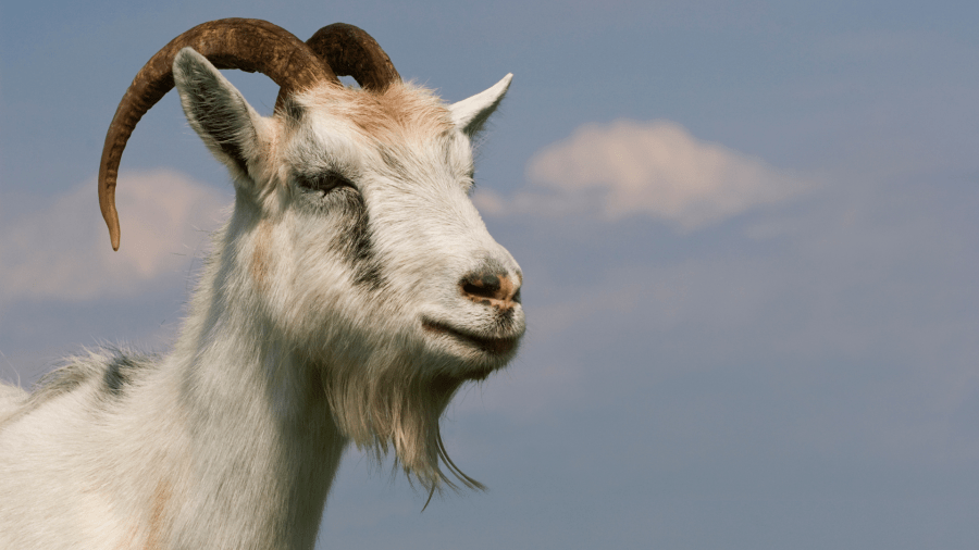 are a goat and a human reaches out their hand, and sure it has feed