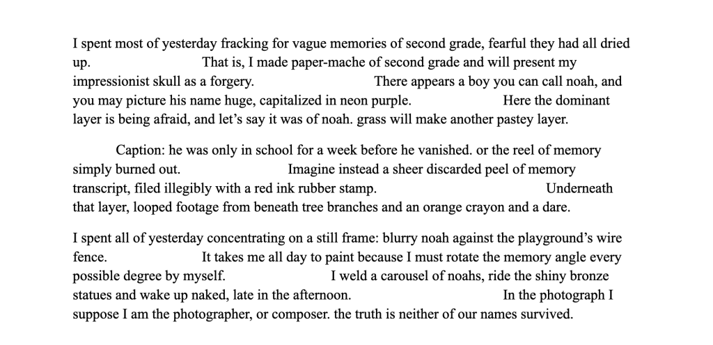 BENNETT RINE is a writer from New Orleans currently residing in Los Angeles. Their work can be found in Palaver Arts Magazine and Fruitslice.